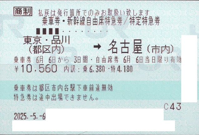 【新幹線自由席販売】 乗車券+特急券の自由席です